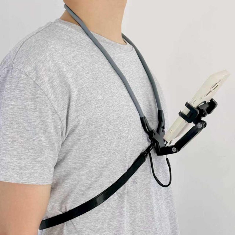 Universal Adjustable Phone Clip Holder With Chest Strap Fixation Bracket Live Streaming Sport Flexible Neck Hanging Phone Stand