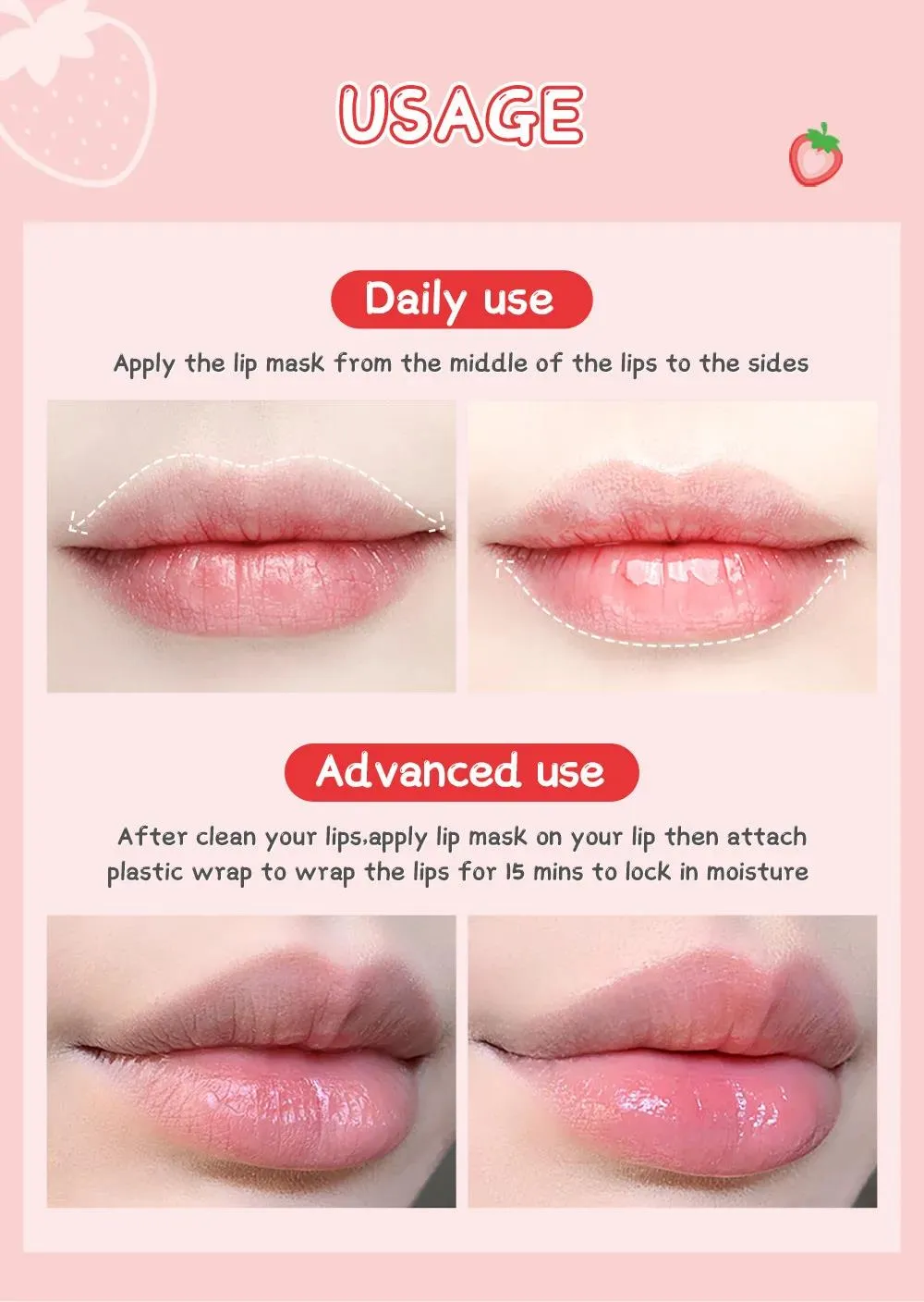 After clean your lips.apply lip mask on your lip then attach plastic wrap to wrap the lips for 15 mins to lock in moisture