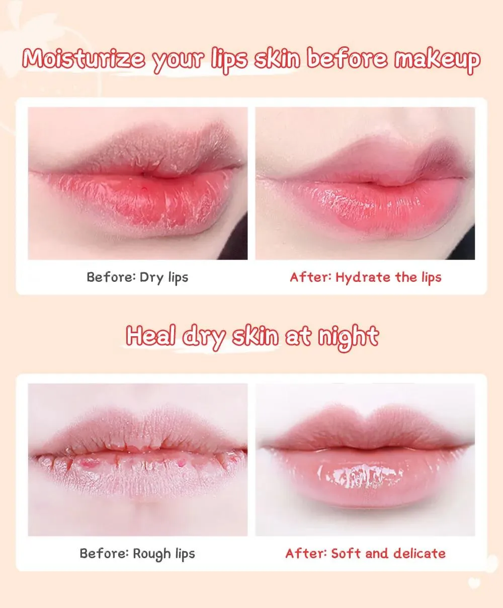●1. Replenishes moisture and locks water for a long time, keeping lips elastic, moisturized and cared for.