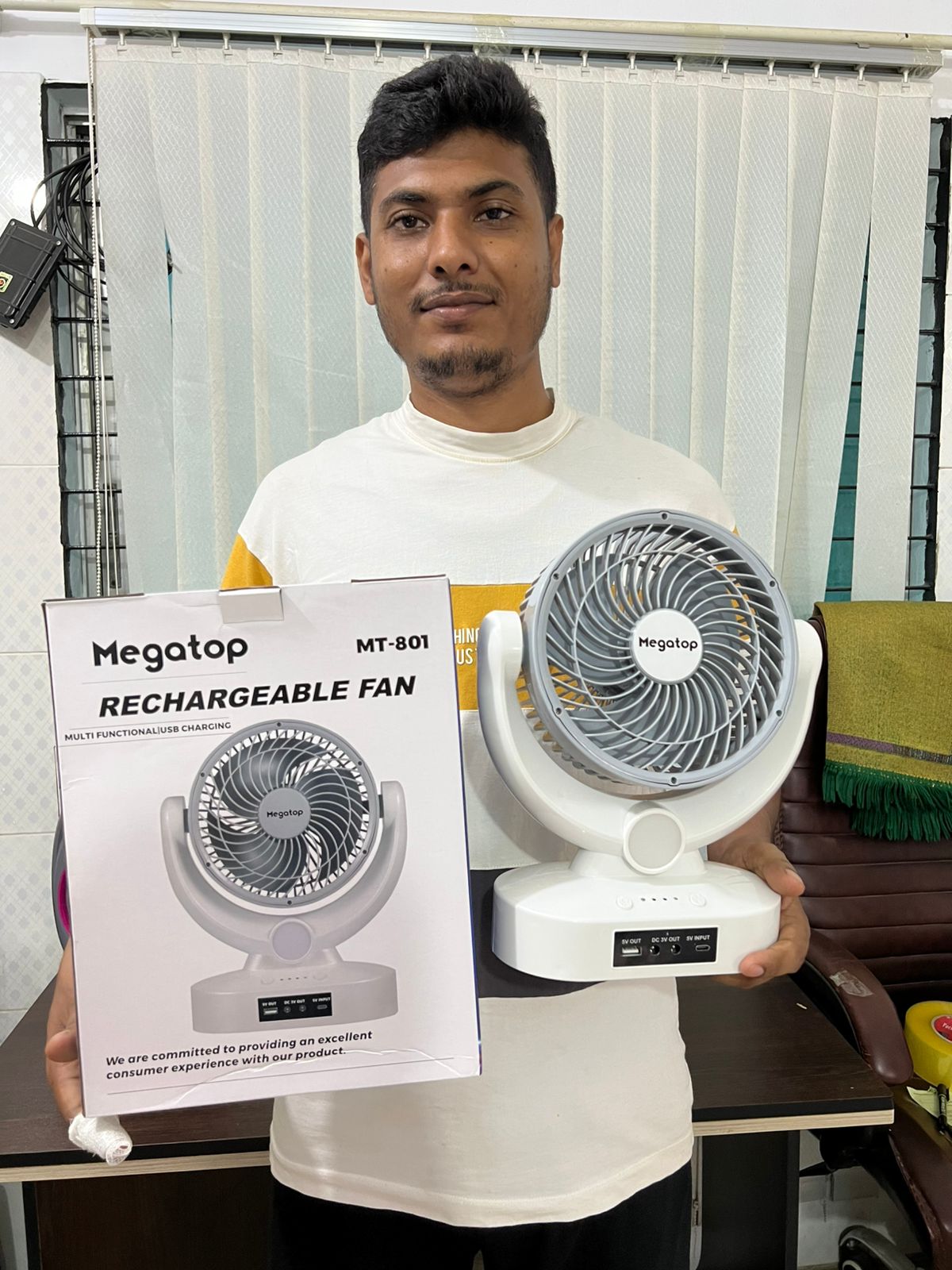 : এই ফ্যান কি চার্জে চলে? হ্যাঁ, এটি USB এর মাধ্যমে রিচার্জ করা যায়।