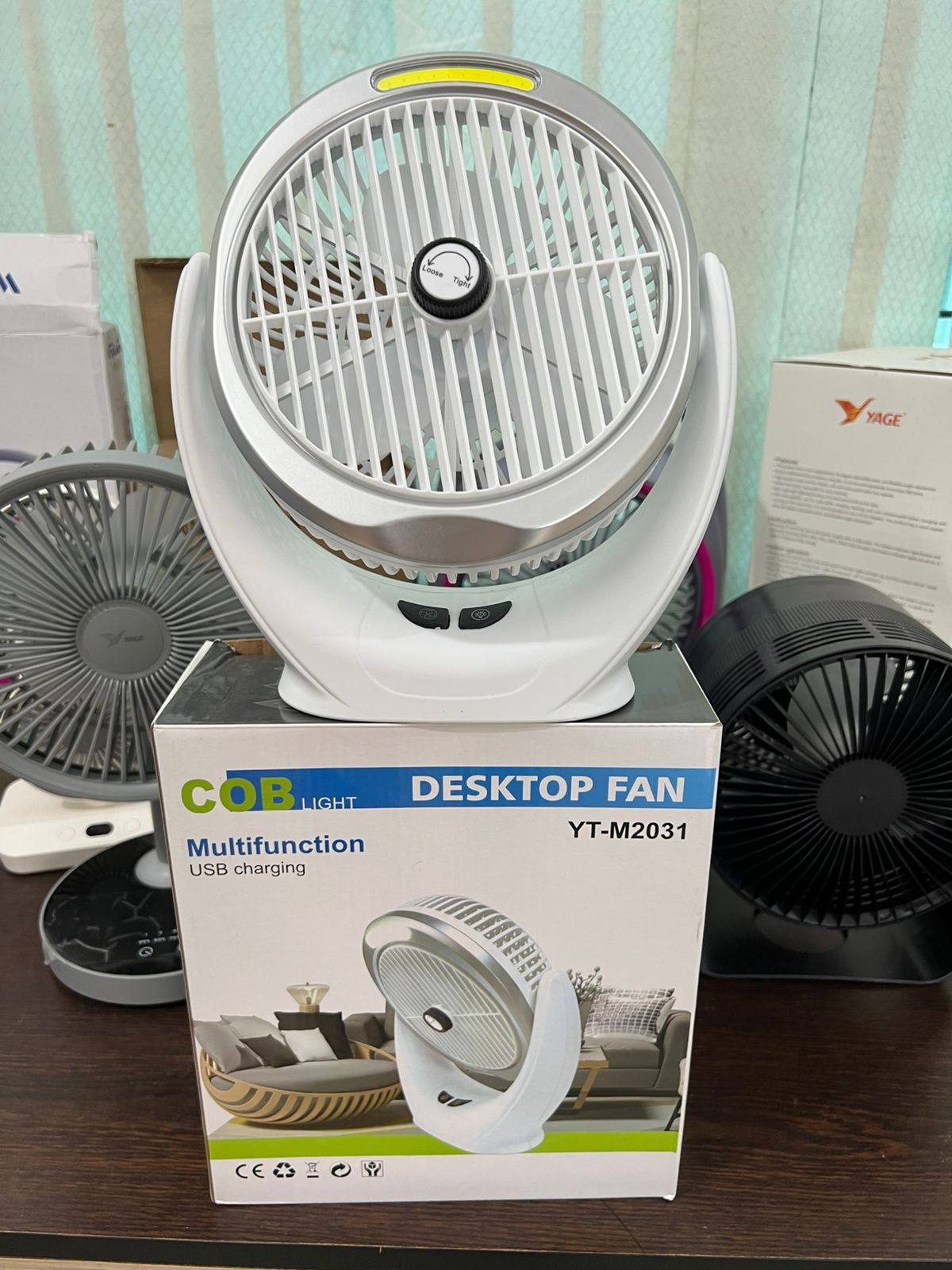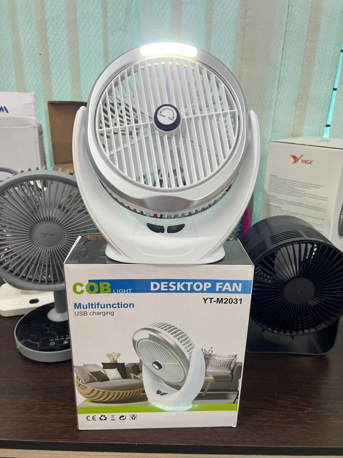 Multifunction Cob Light Desktop Fan | Portable & USB Rechargeable